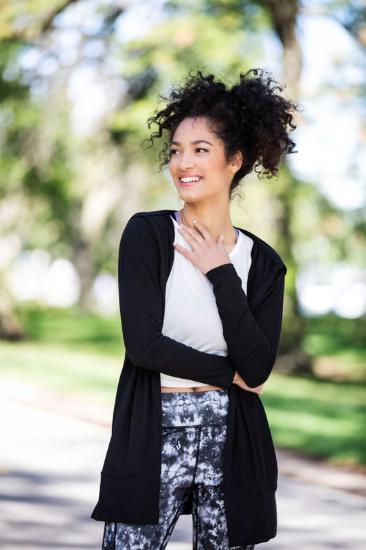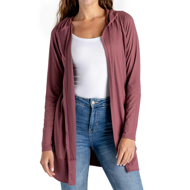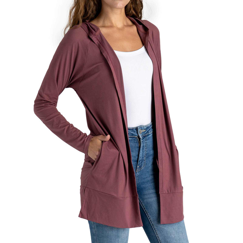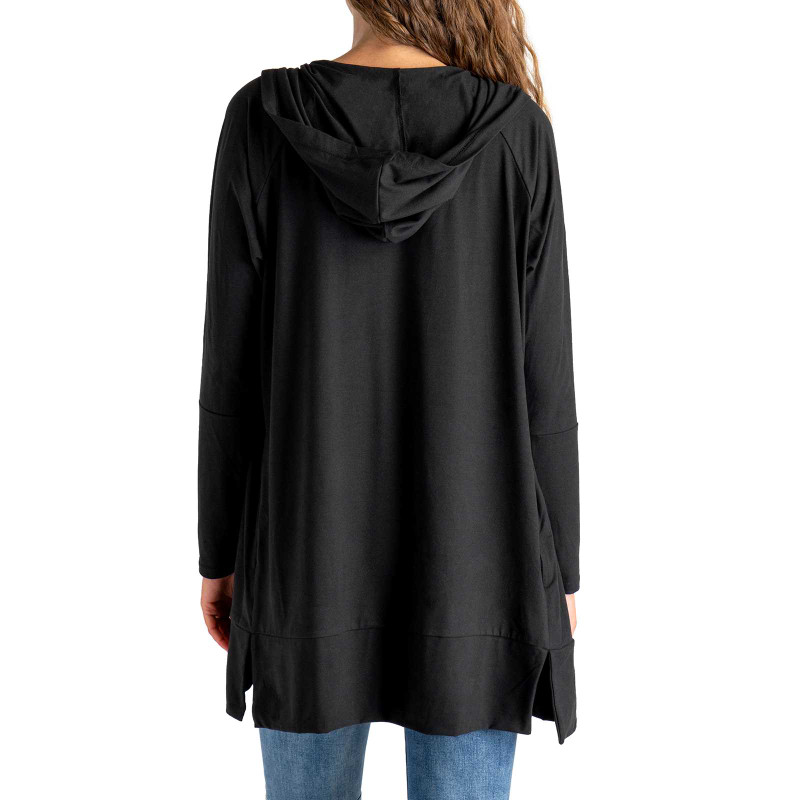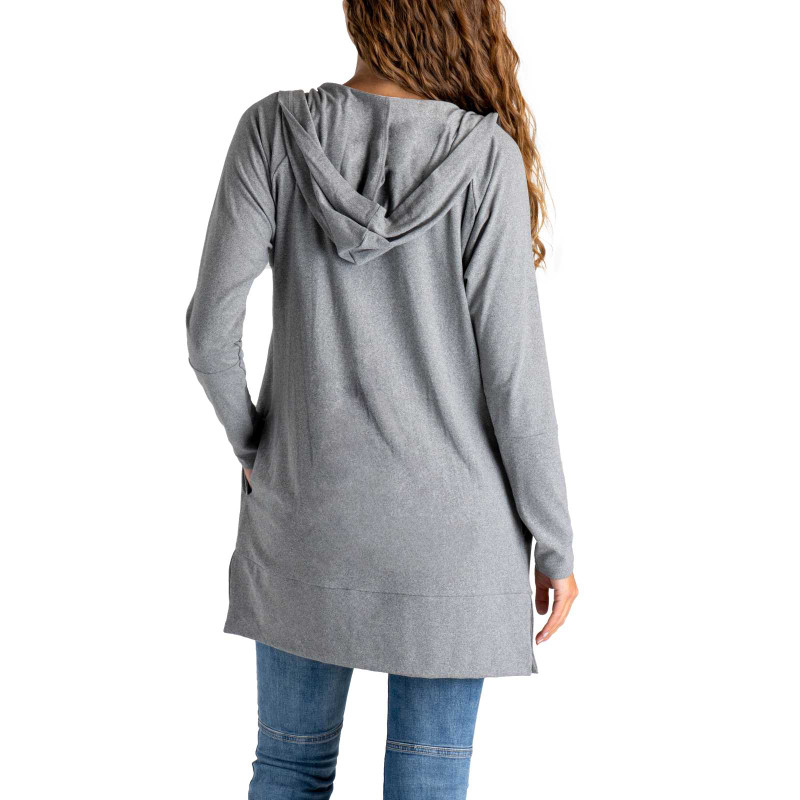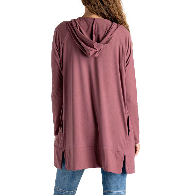 Wear anywhere, adventure everywhere. This lightweight hooded cardi features ultra soft stretch fabric, side pockets and a long tunic length for a sporty layer you can style up or down.